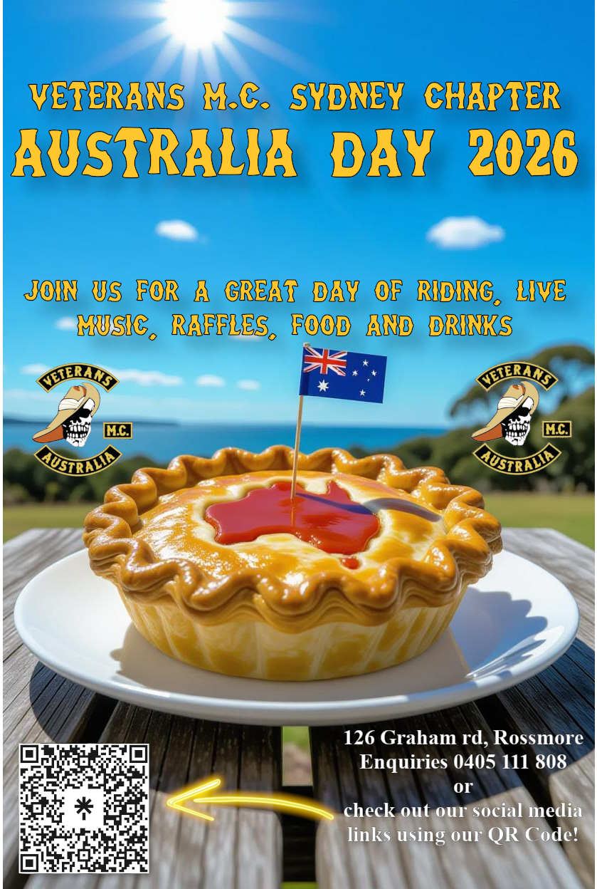 Australia Day 2026 is gonna be a blast! Come and join us for a ride, live music, raffles, food, drink, and good times to celebrate this beautiful country!