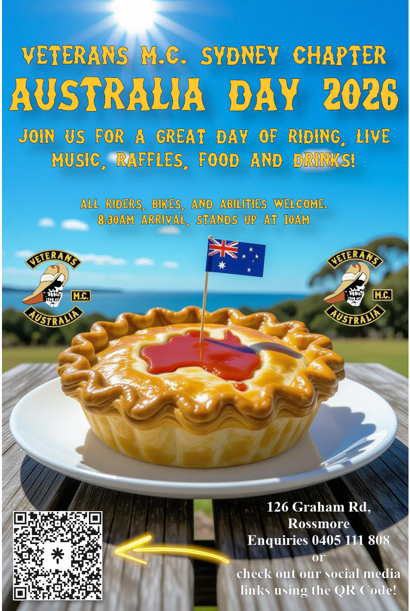 Australia Day 2026 is gonna be a blast! Come and join us for a ride, live music, raffles, food, drink, and good times to celebrate this beautiful country!